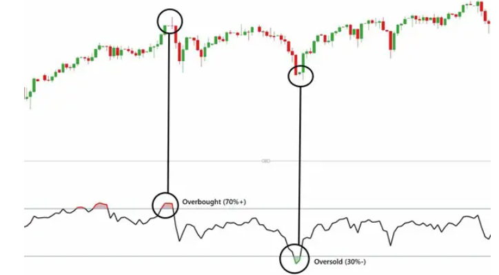 The Relative Strength Index (commonly known as the RSI) is another technical indicator used by analysts. It uses the momentum in price movements to determine overbought or oversold conditions on a chart. Anything under the value of 30 is considered oversold which could indicate undervalued conditions or a reversal in a downtrend whereas anything over the value of 70 is considered overbought which could indicate overvalued conditions or a reversal in an uptrend.
